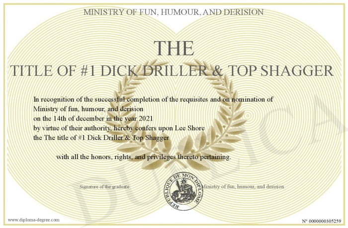 Certificate-degree can have your The title of #1 Dick Driller & Top Shagger