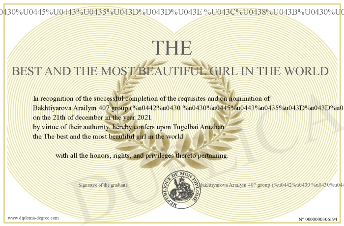 Certificate-degree can have your The best and the most beautiful girl in the world