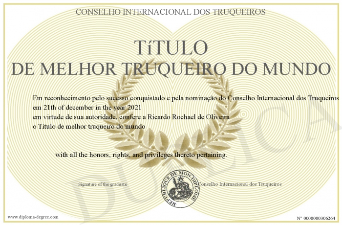Certificate-degree can have your Título de melhor truqueiro do mundo