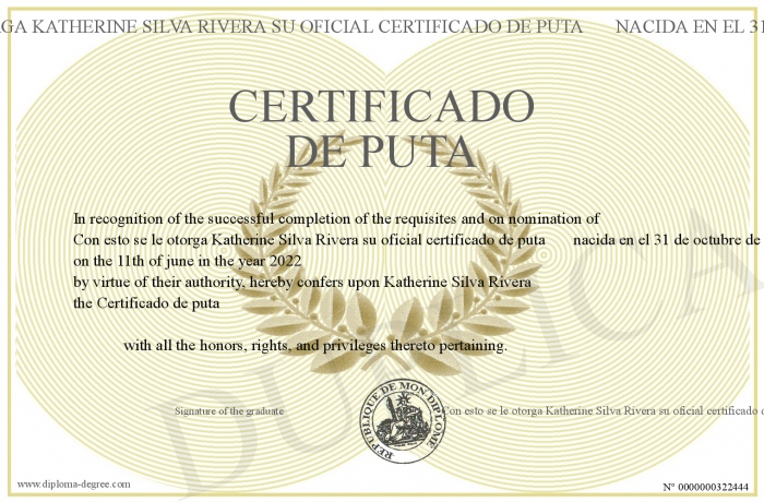 delivered to his owner by Con esto se le otorga Katherine Silva Rivera su oficial certificado de puta nacida en el 31 de octubre de 1990 !