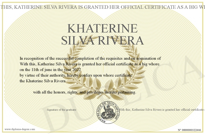 delivered to his owner by With this, Katherine Silva Rivera is granted her official certificate as a big whore. !
