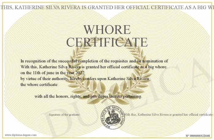 delivered to his owner by With this, Katherine Silva Rivera is granted her official certificate as a big whore. !
