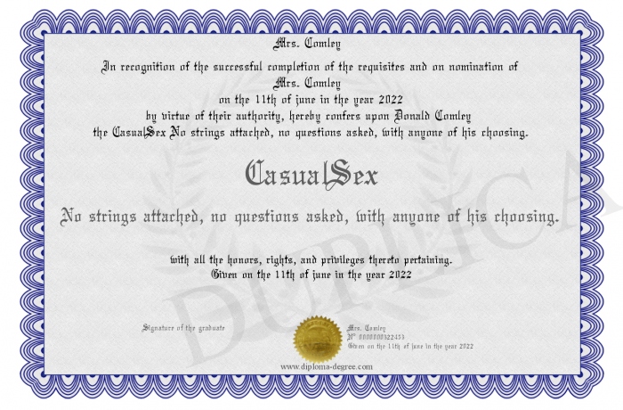 Certificate-degree can have your CasualSex No strings attached, no questions asked, with anyone of his choosing.