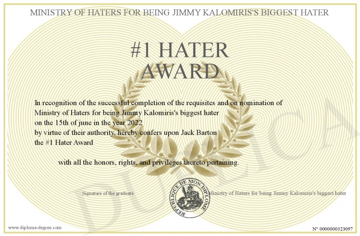 delivered to his owner by Ministry of Haters for being Jimmy Kalomiris's biggest hater !