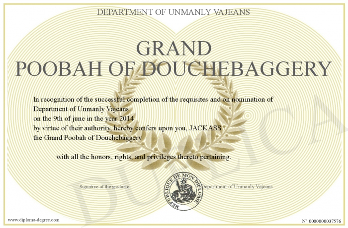 Certificate-degree can have your Grand Poobah of Douchebaggery