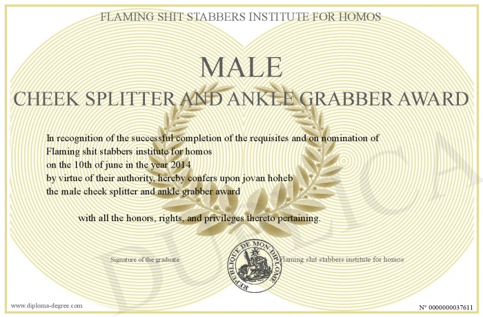 Certificate-degree can have your male cheek splitter and ankle grabber award