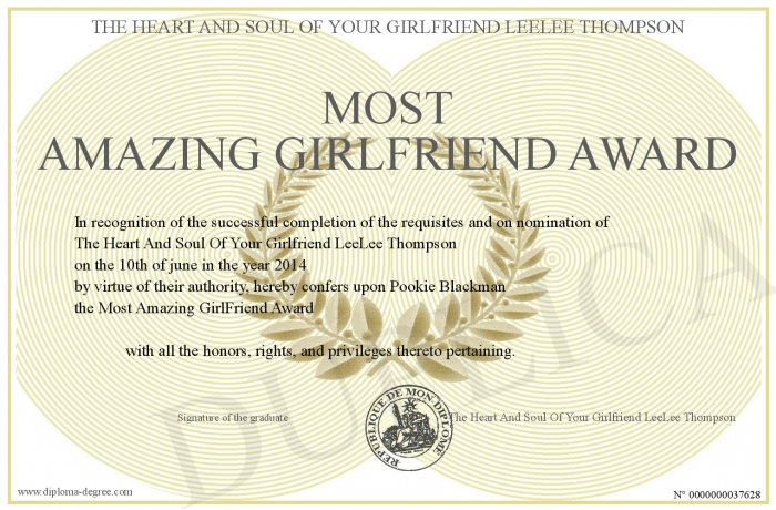 Certificate-degree can have your Most Amazing GirlFriend Award