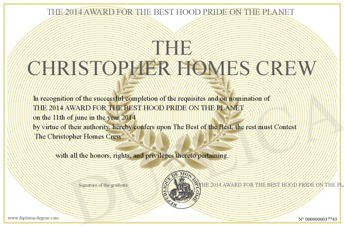 delivered to his owner by THE 2014 AWARD FOR THE BEST HOOD PRIDE ON THE PLANET !