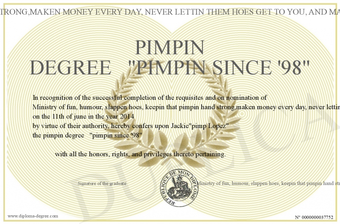 Certificate-degree can have your pimpin degree -pimpin since '98-