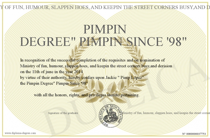 Certificate-degree can have your Pimpin Degree- Pimpin Since '98-
