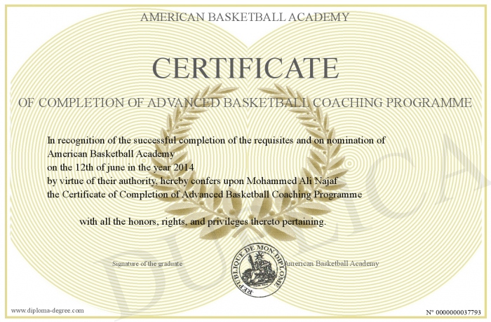 Certificate-degree can have your Certificate of Completion of Advanced Basketball Coaching Programme