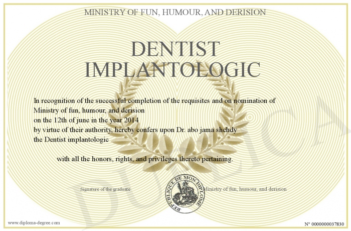 Certificate-degree can have your Dentist implantologic