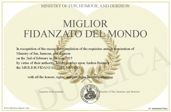 Certificate-degree can have your MIGLIOR FIDANZATO DEL MONDO