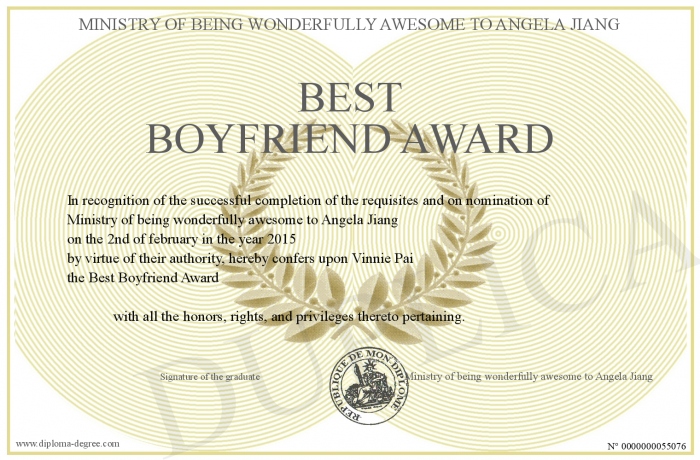 Certificate-degree can have your Best Boyfriend Award