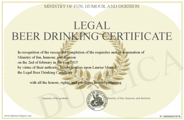 Certificate-degree can have your Legal Beer Drinking Certificate