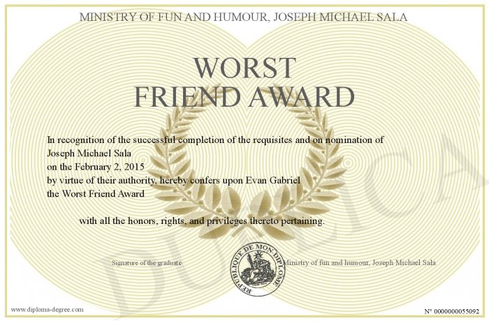 delivered to his owner by Ministry of fun and humour, Joseph Michael Sala !