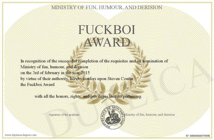 Certificate-degree can have your Fuckboi Award