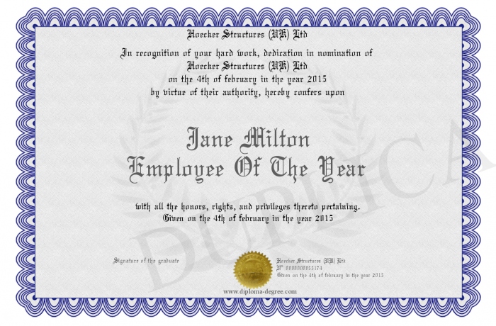 Certificate-degree can have your Jane Milton Employee Of The Year