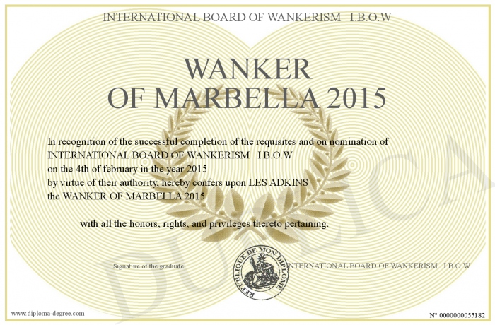 Certificate-degree can have your WANKER OF MARBELLA 2015