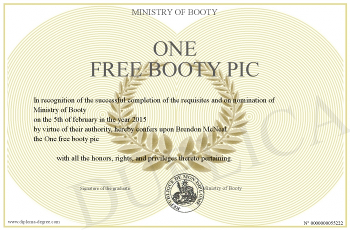 Certificate-degree can have your One free booty pic