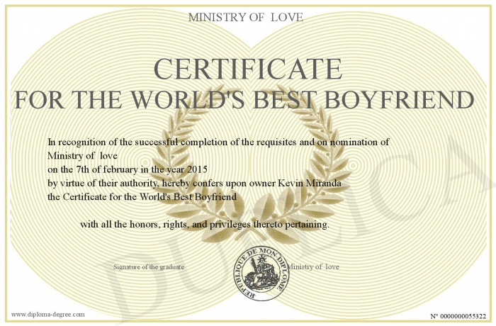Certificate-degree can have your Certificate for the World's Best Boyfriend