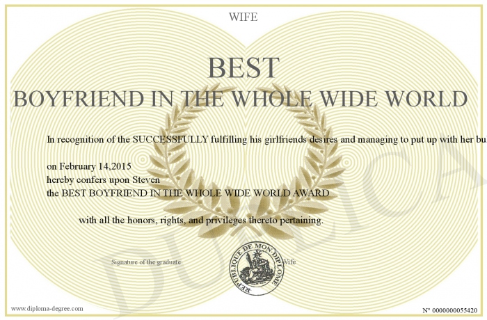 Certificate-degree can have your BEST BOYFRIEND IN THE WHOLE WIDE WORLD