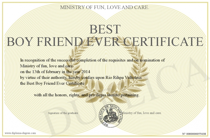 Certificate-degree can have your Best Boy Friend Ever Certificate