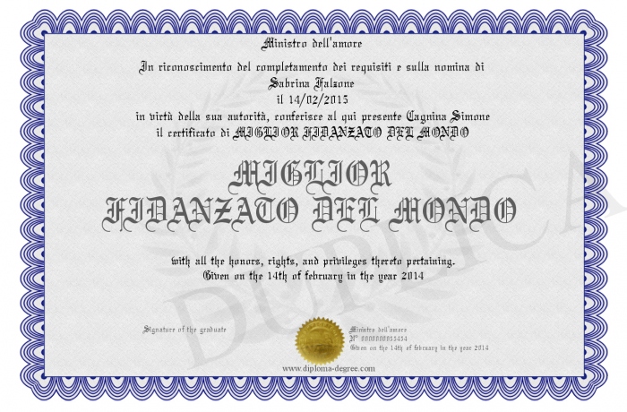 Certificate-degree can have your MIGLIOR FIDANZATO DEL MONDO