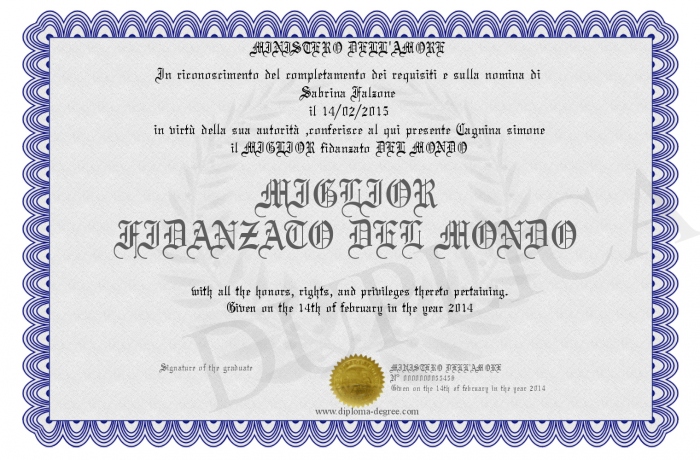 Certificate-degree can have your MIGLIOR FIDANZATO DEL MONDO