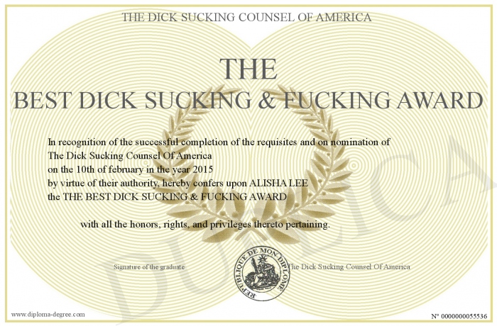 Certificate-degree can have your THE BEST DICK SUCKING & FUCKING AWARD