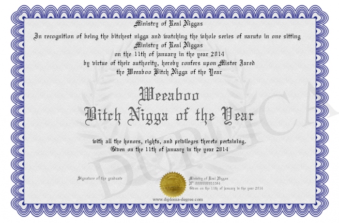 Certificate-degree can have your Weeaboo Bitch Nigga of the Year