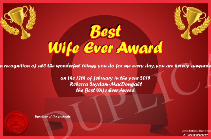 Certificate-degree can have your Best Wife Ever Award