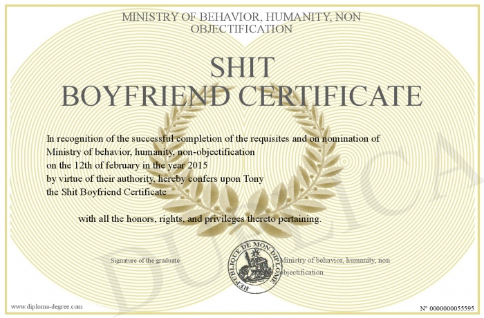 Certificate-degree can have your Shit Boyfriend Certificate