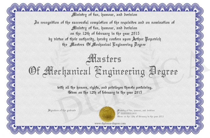 Certificate-degree can have your Masters Of Mechanical Engineering Degree