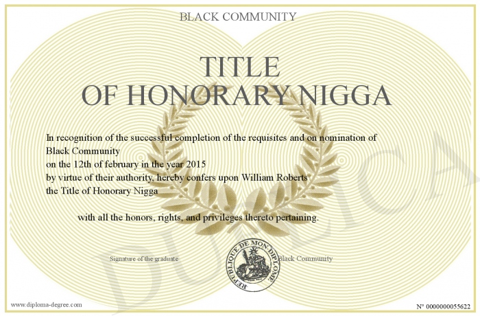 Certificate-degree can have your Title of Honorary Nigga