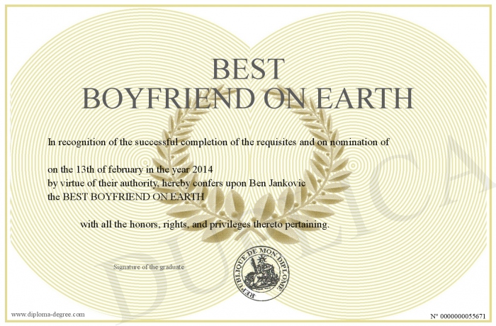 Certificate-degree can have your BEST BOYFRIEND ON EARTH