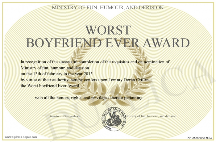 Certificate-degree can have your Worst boyfriend Ever Award