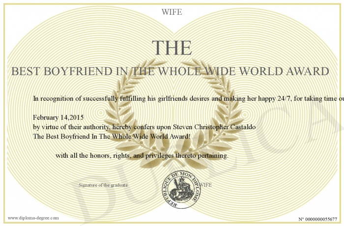 Certificate-degree can have your The Best Boyfriend In The Whole Wide World Award