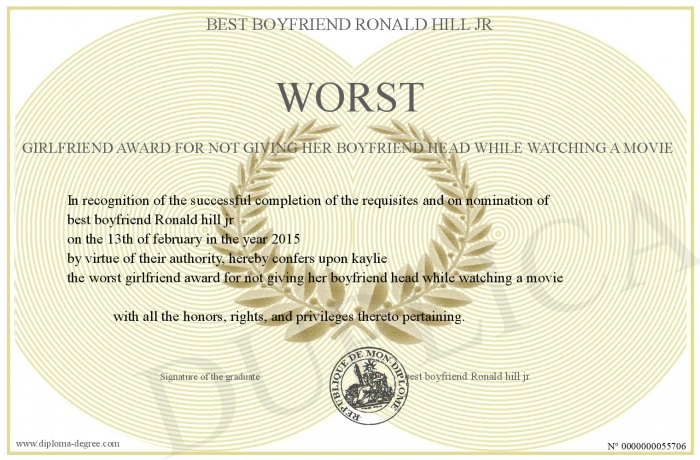 Certificate-degree can have your worst girlfriend award for not giving her boyfriend head while watching a movie
