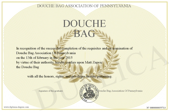 delivered to his owner by Douche Bag Association Of Pennsylvania !
