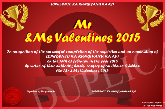 Certificate-degree can have your Mr &Ms Valentines 2015
