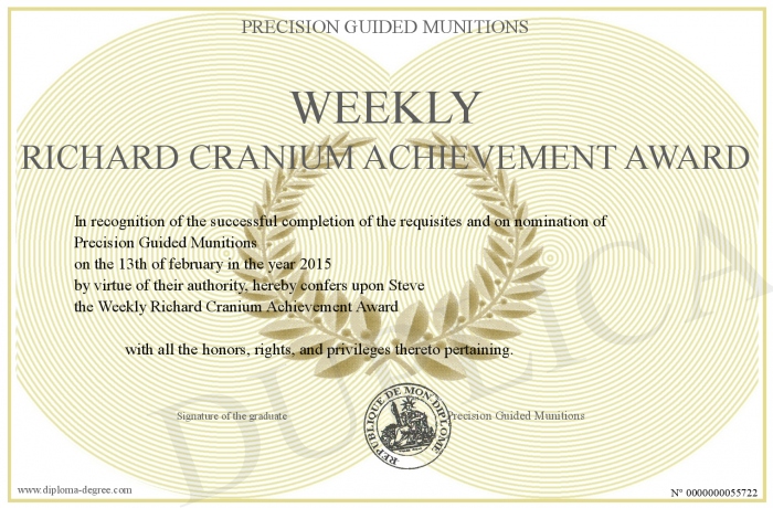 Certificate-degree can have your Weekly Richard Cranium Achievement Award