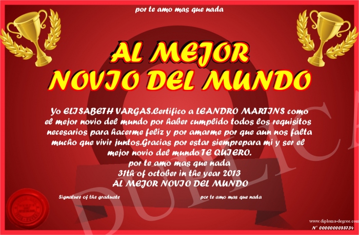 Certificate-degree can have your AL MEJOR NOVIO DEL MUNDO