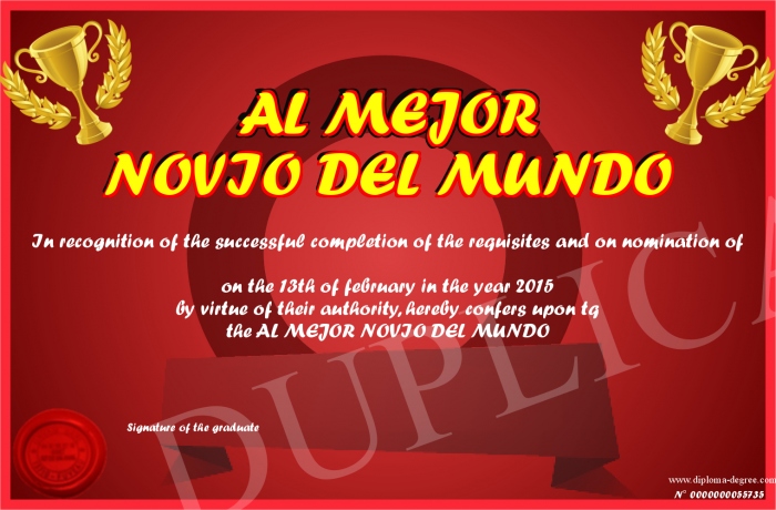 Certificate-degree can have your AL MEJOR NOVIO DEL MUNDO