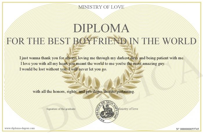 Certificate-degree can have your Diploma for the best boyfriend in the world