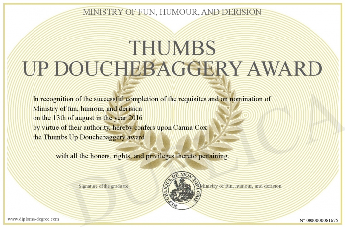 Certificate-degree can have your Thumbs Up Douchebaggery award