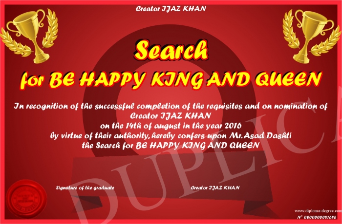 Certificate-degree can have your Search for BE HAPPY KING AND QUEEN