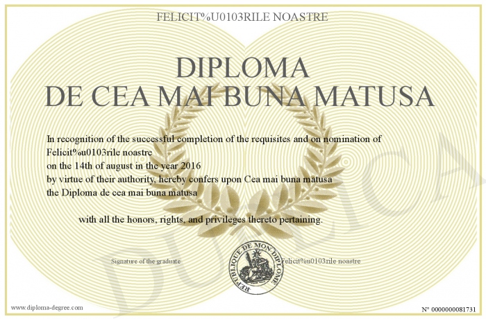Certificate-degree can have your Diploma de cea mai buna matusa