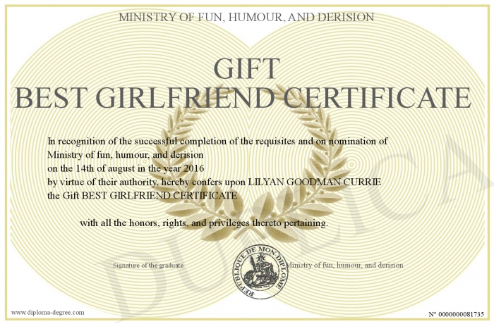 Certificate-degree can have your Gift BEST GIRLFRIEND CERTIFICATE