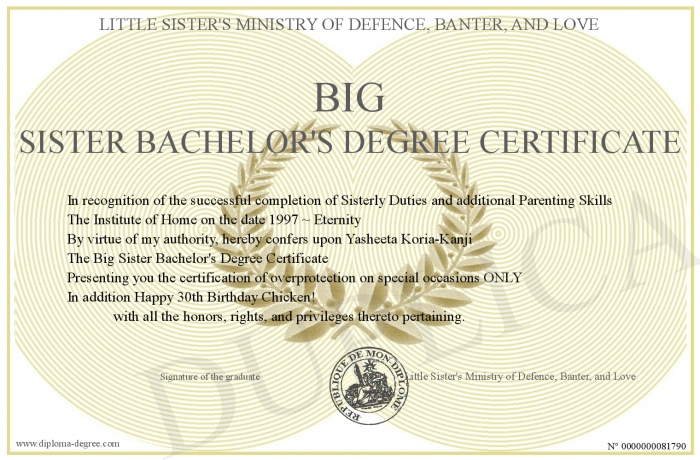 Certificate-degree can have your Big Sister Bachelor's Degree Certificate